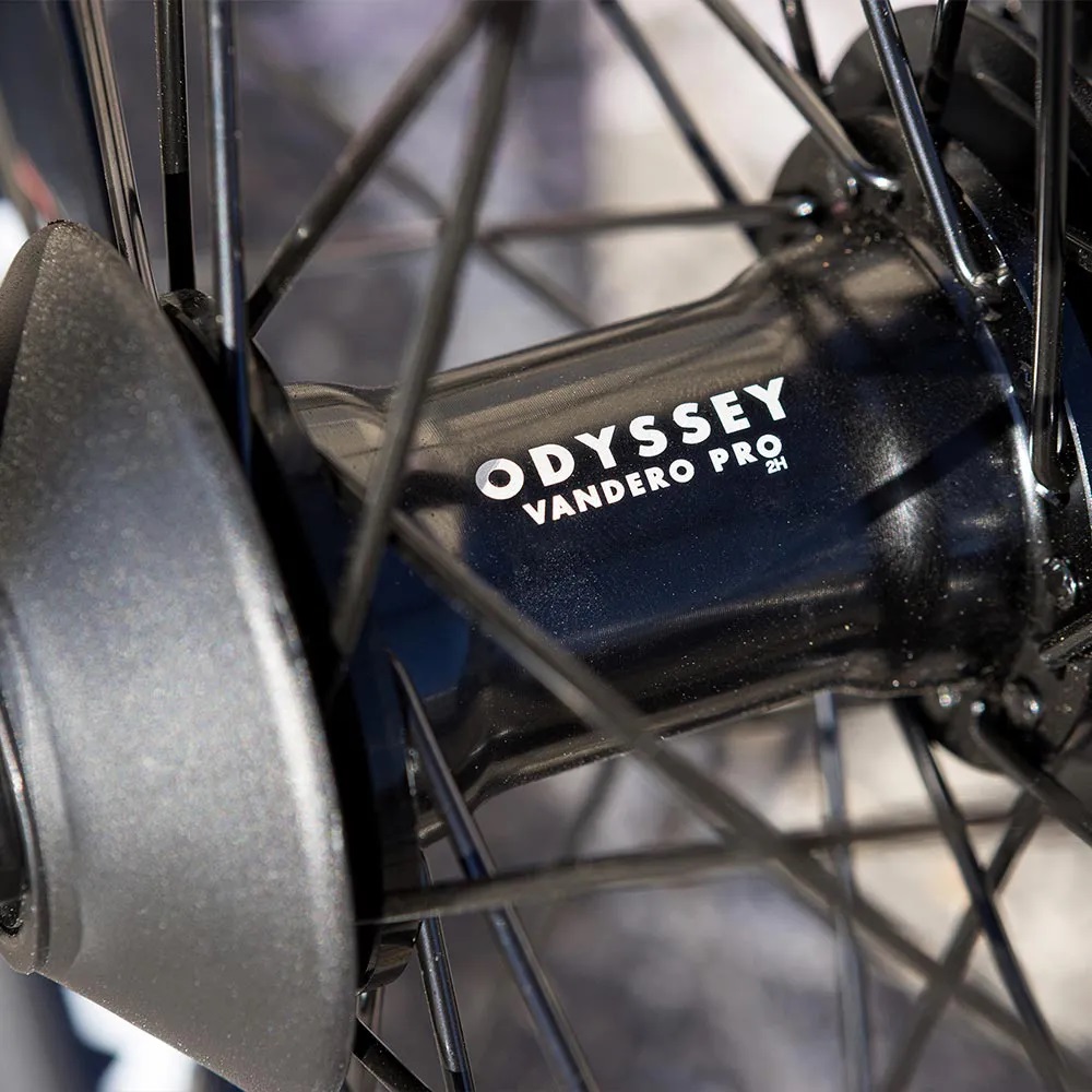 - Rodas: Aros Odyssey Hazard Lite 20" 36 furos / Cubo dianteiro Odyssey Vandero Pro selado 3/8" femea (2 protetores) / Cubo traseiro Odyssey Antigram V2 Cassete selado 14 mm femea c/ cog 9 dentes (RHD/LHD SDS, protetor NDS)